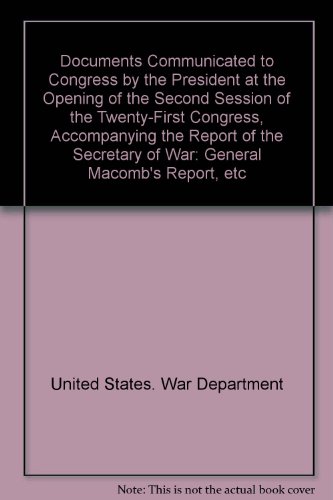 PDF Documents Communicated to Congress by the President at the Opening of the Second Session of the Twenty-First Congress, Accompanying the Report of the Secretary of War: General Macomb's Report, etc Download ... and over one million other books are available for Kindle. ... Book 8 of 9 in the PDF Documents Communicated to Congress by the President at the Opening of the Second Session of the Twenty-First Congress, Accompanying the Report of the Secretary of War: General Macomb's Report, etc Read Online .... Get your Kindle here, or download a FREE Kindle Reading App.
